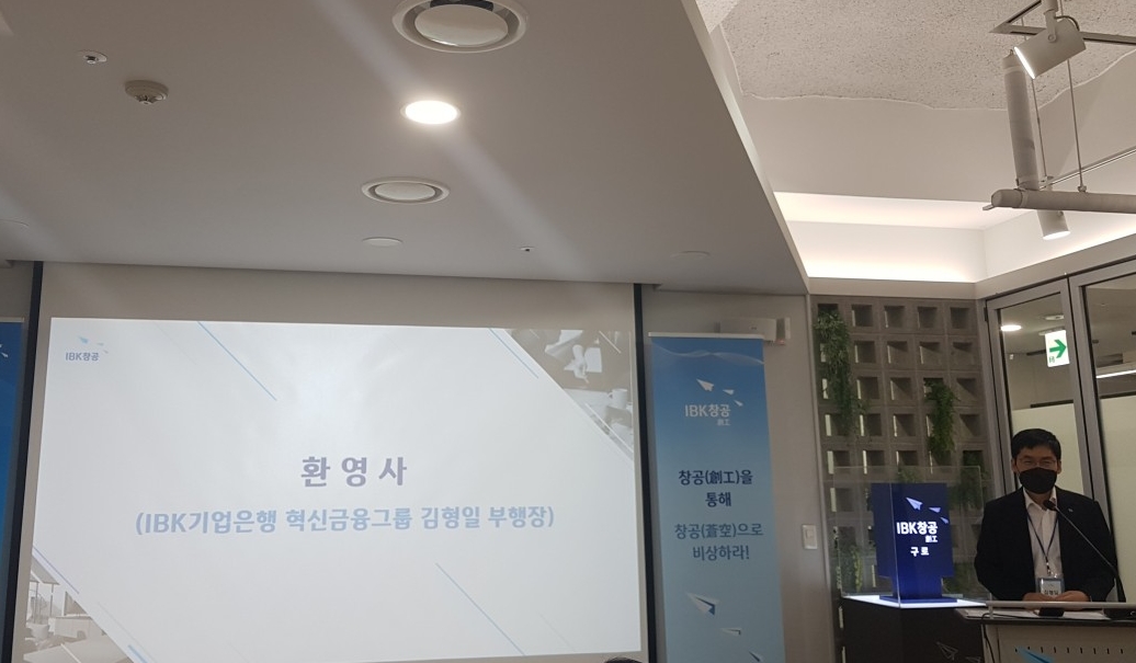 (사진) 김도윤 IBK창공 구로 센터장이 오리엔테이션을 하고 있다.